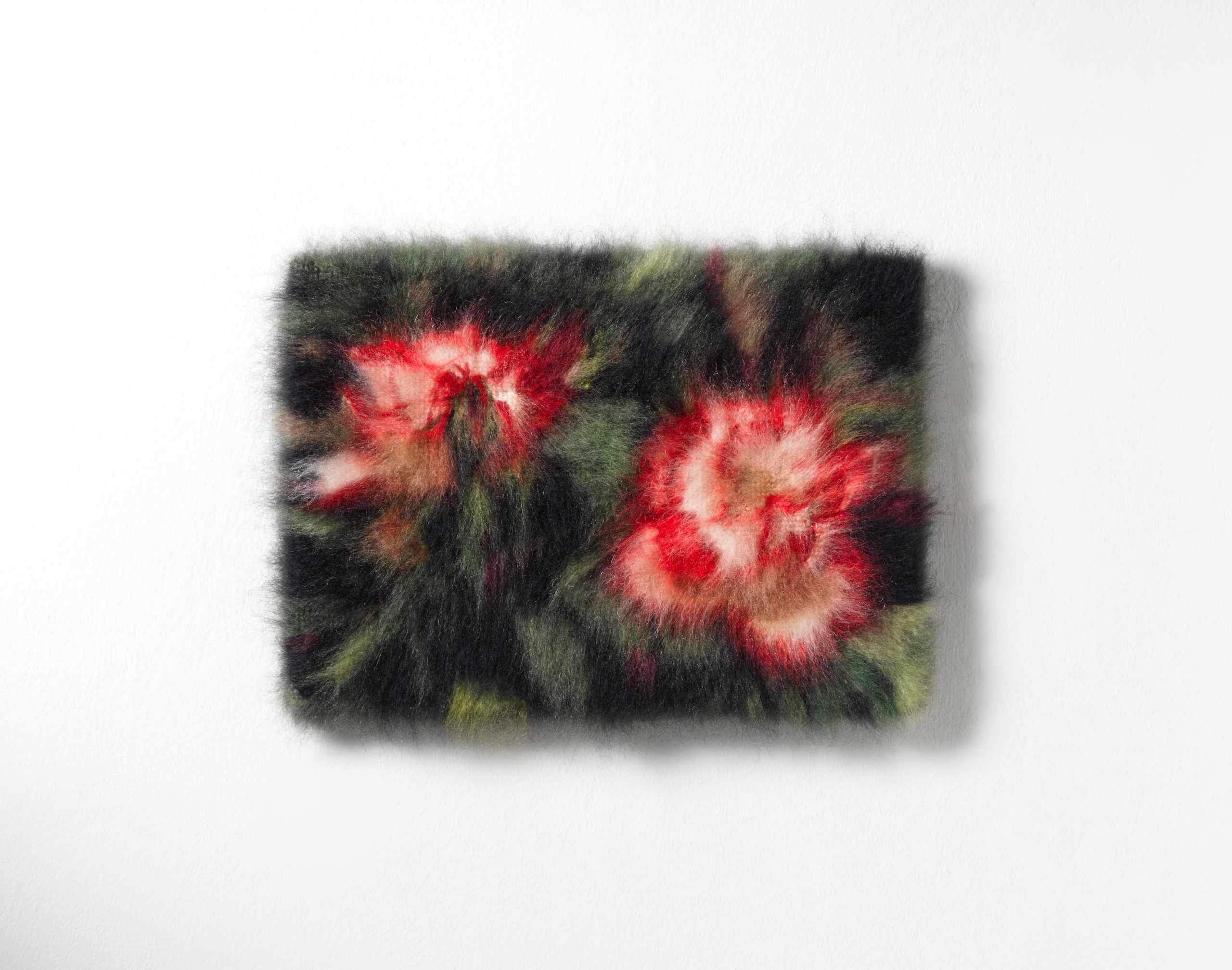 In her latest creations, Szakats brings allegories of human nature to life through embroidered imagery, drawing inspiration from the tradition of fables featuring animals and plants as seen in medieval and Renaissance tapestries. Through a contemporary panoply of allegorical figures, the artist explores the concept of fragmented personal interiority, with the human body itself remaining absent.